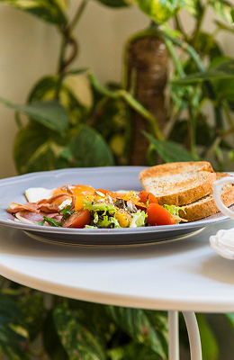 Cuidamos cada detalle: ingredientes de temporada, recetas hechas al momento, ambiente relajado y trato cercano. Ya vengas solo a desconectar o en compañía para compartir un brunch, estamos aquí para hacer que todo fluya y florezca.